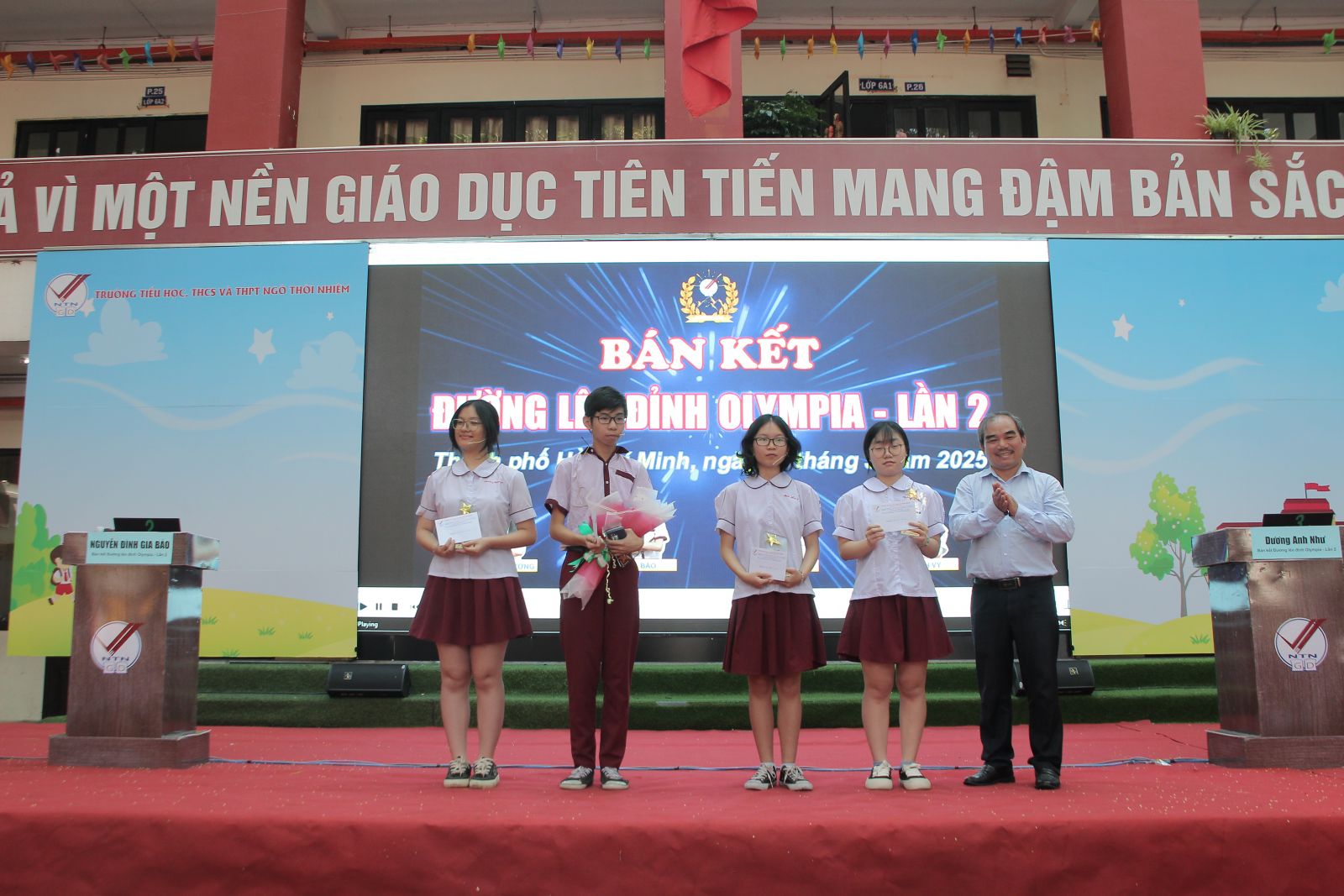 Sáng ngày 3/3, trường TiH, THCS và THPT Ngô Thời Nhiệm (cơ sở TP. HCM) đã tổ chức vòng Bán kết 2 Đường lên đỉnh Olympia cấp trường lần 2. Sau những màn tranh tài gay cấn, Ban tổ chức đã xác định được hai thí sinh tiếp theo giành quyền vào vòng Chung kết.